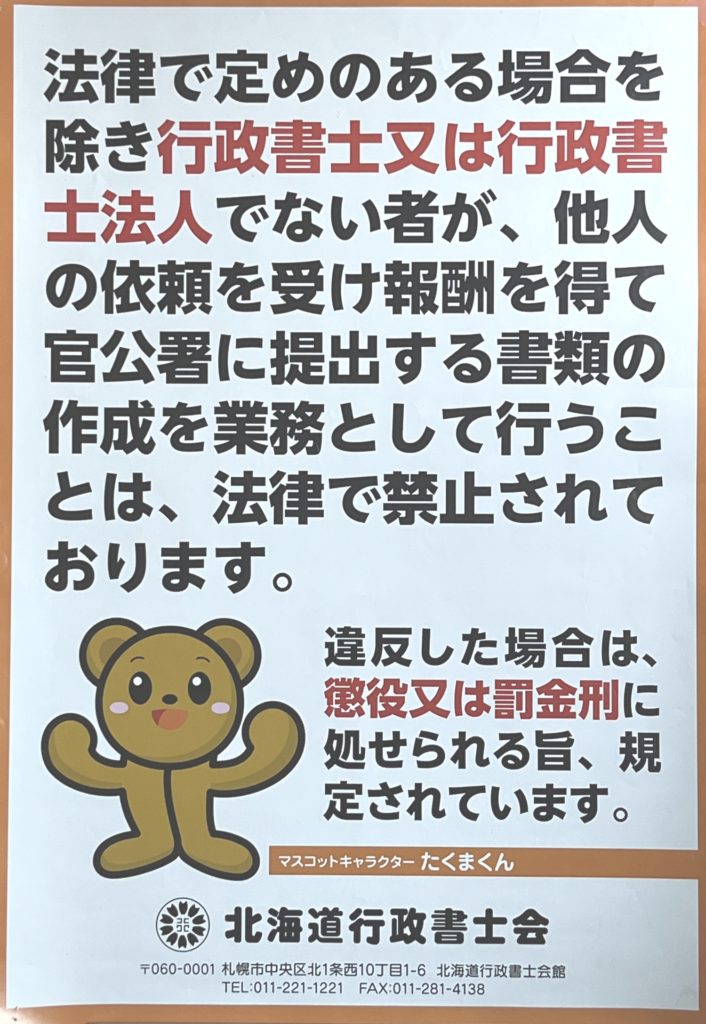 「たくまくん」は北海道行政書士会が北海道内外における行政書士制度の広報、宣伝を目的として作成したマスコットキャラクターです。