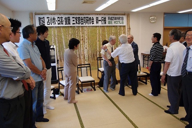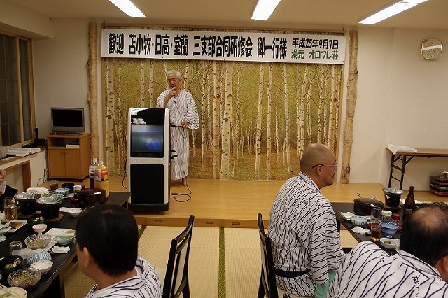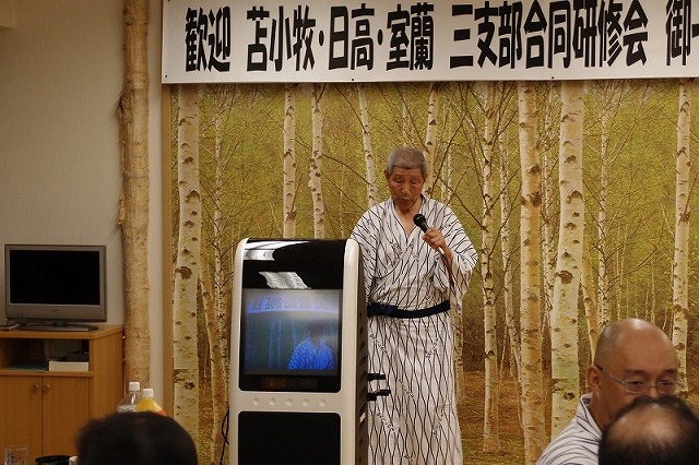 まずは、集合写真。室蘭支部様からいただいた写真からスキャナーで起こしてトリミングしていますので色が変わっています。 ![]() 少し変わった研修会の風景 参加型なんです ![]() 居眠りはできません ![]() 左から3人目が講師先生 請師 水上恵子様(臨床心理士) 初めて体験出口 克夫さん 拝聴 真剣出口 克夫さん少し困惑 @年の順に並ぶ、A背丈の順に並ぶ 口を利いてはいけない 身振り手振りで行う 勘違いも背丈の順に・・・してやったりの顔 アイスブレークに良いこれは背丈の順か? 結構楽しい----- 懇親会 ----早速、鈴木 勇高さんのカラオケ ![]() 畑端 憲行さん 互野 利夫さん 役場OB意気投合 ![]() 山科 幸一さんの18番 ? ![]() 松下 吉文さん これは2次会の写真です 背景が違うでしょう ![]() これは1次会 ![]() こちらも同地域で投合 北道 正博さん 松下 吉文さん ![]() 畑端 憲行さん 18番 ![]() 楽しい懇親会も2次会を経てpm12時過ぎまで続きました 来年は日高の当番! |