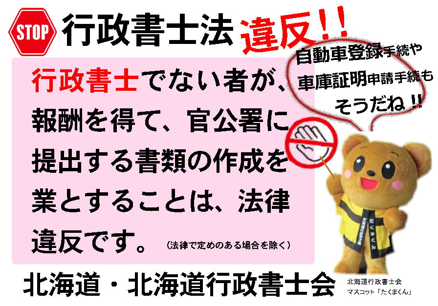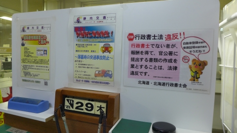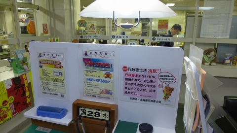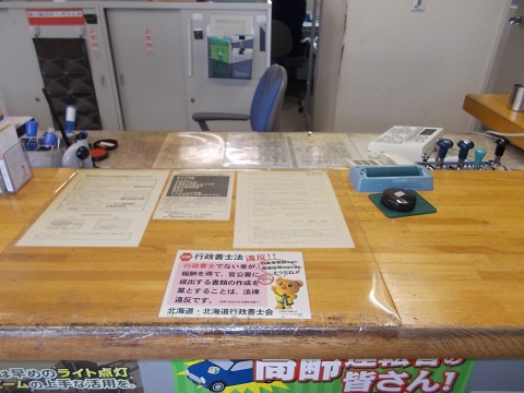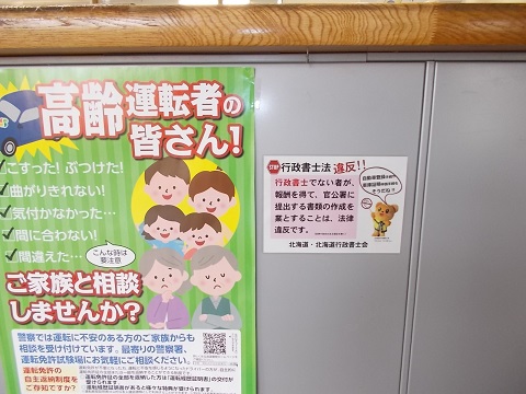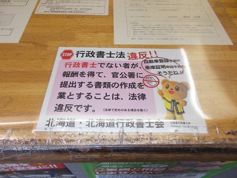 | 非行政書士対策 | 30.11.27 | 門別、静内、浦河警察署 | 「STOP 行政書士法違反」の掲示物の、日高三署での掲示 |