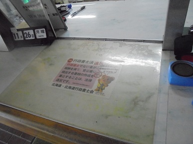 | 浦河署 (カウンター下とカウンター上に貼付) 静内署 (受付の前の記載台に貼付) ![]() ![]() 静内署 2018.11.29追加 門別署 (カウンターとその上のガラス部分に貼付) |