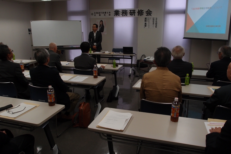 新冠町レ・コード館 | @内容 法定相続情報証明制度について 講師 札幌法務局日高支局 支局長 渡部 高幸 様 A内容 OSSについて 講師 北海道行政書士会室蘭支部会員 北海道行政書士会 封印管理等委員会 副委員長 土井 伸 様 |