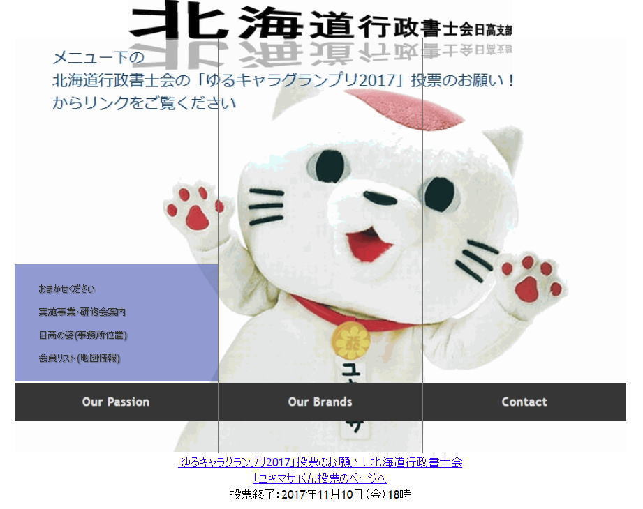 | 広報活動 | 9〜10月 | 管内一円 | 行政書士制度広報月間 ポスター・パンフ配布 ゆるキャラグランプリ2017「ユキマサ」くん投票支援 トップhpにてPR |